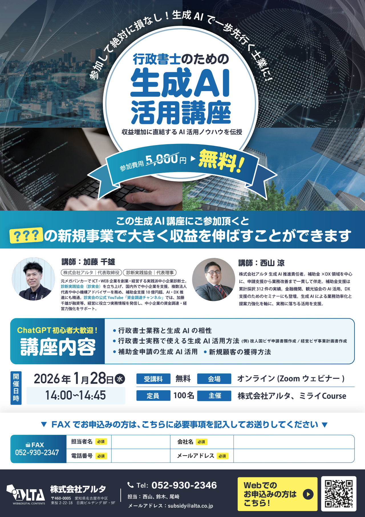参加費無料(通常5,000円)で、生成AIの具体的な活用方法を学べるチャンス!