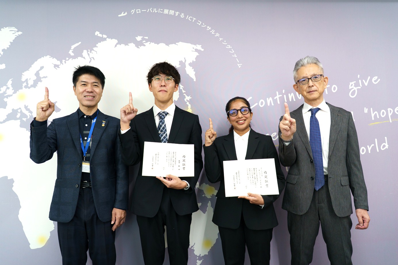 10/1(水) 内定式を実施しました 2025/10/1 本年度は2名の内定者を迎えることができました✨ 当日は、内定者と社長・会長をはじめ、アルタグループ全体で参加し、歓迎と激励の気持ちを込めて執り行いました。式の最後には、配属予定部署の先輩から心のこもったお手紙と記念品をお渡しし、温かい雰囲気の中で式を終えることができました。 これから新しい仲間と共に、さらに力を合わせて歩んでまいります。引き続きどうぞよろしくお願いいたします!