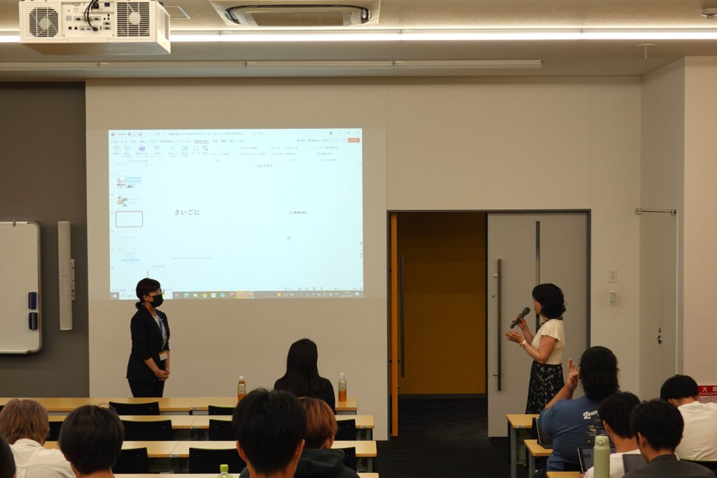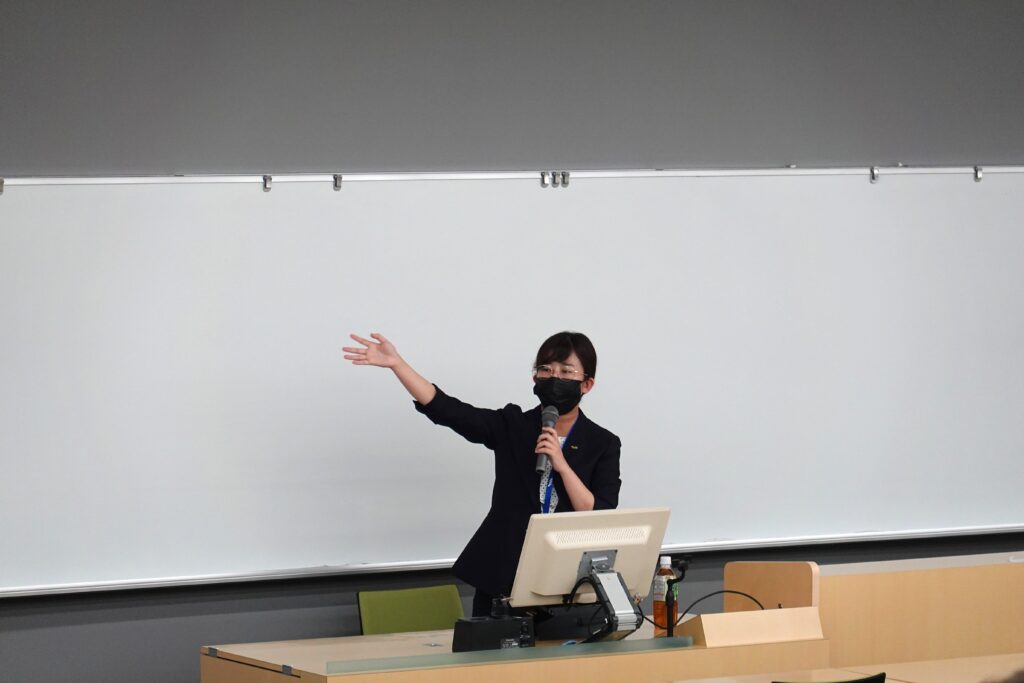 10/1(水) 名古屋文理大学の授業に社員が登壇させていただきました 2025/10/2 このたび、名古屋文理大学情報メディア学部の2年生を対象とした授業に、当社OG社員が登壇しました。 約100名もの学生の皆さんにご参加いただき、「キャリアトークショー」ということで仕事内容やアルタを選んだ理由、キャリア形成にまつわるエピソードなどをお話ししました。 これからの大学生活や就職活動に、少しでも前向きな気づきとなれば幸いです。 ご参加いただいた皆様、ありがとうございました!