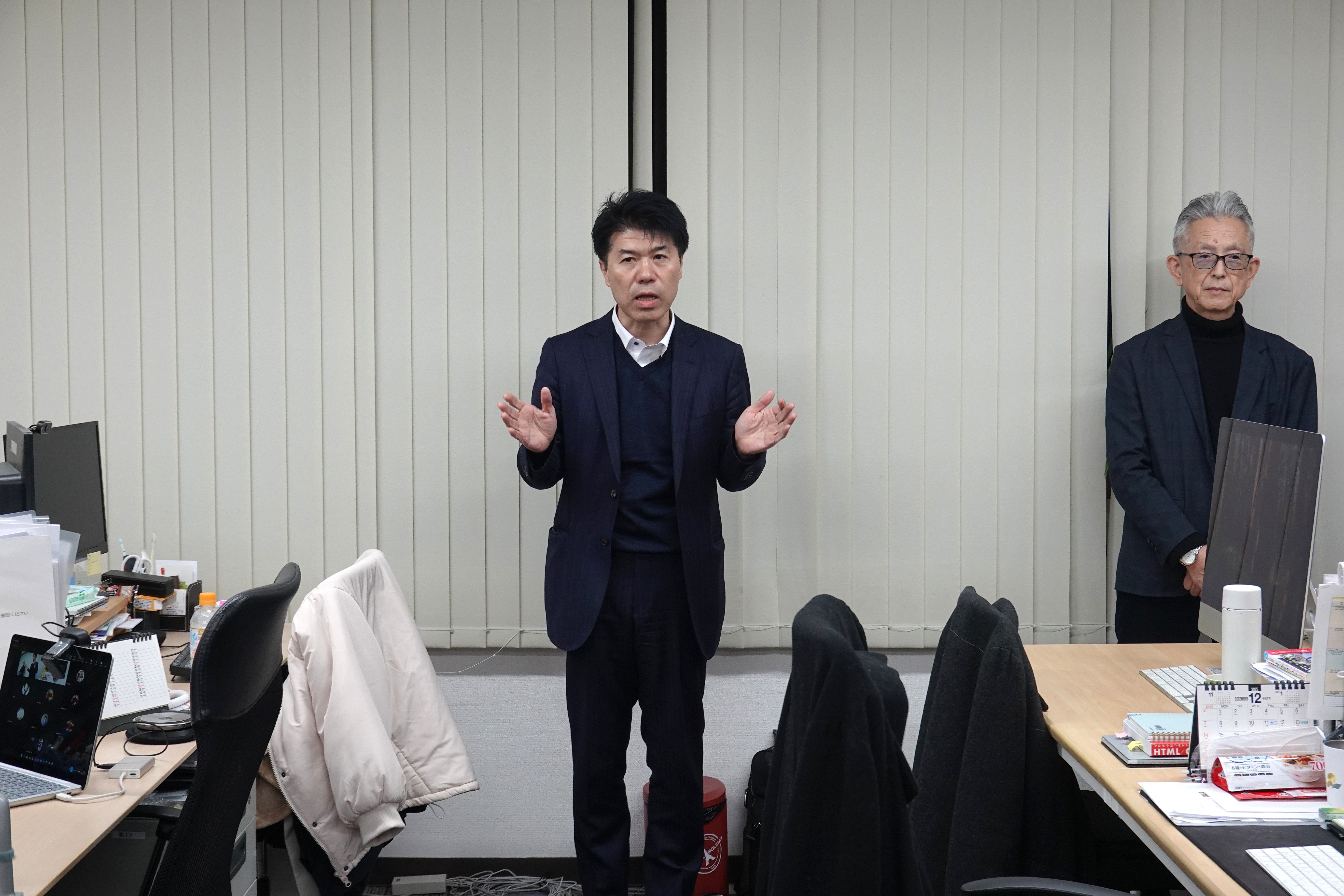12月26日(金) 社長から年内営業日、最後の挨拶がありました 2025/12/26 本日、社長から年内最後の挨拶がありました。 今年も多くの挑戦を乗り越え、チーム一丸となって前進してきました。社長の言葉に力をもらい、来年もさらに一歩ずつ成長していけるよう、全員で力を合わせていきます! 今年もありがとうございました!来年もよろしくお願いいたします。