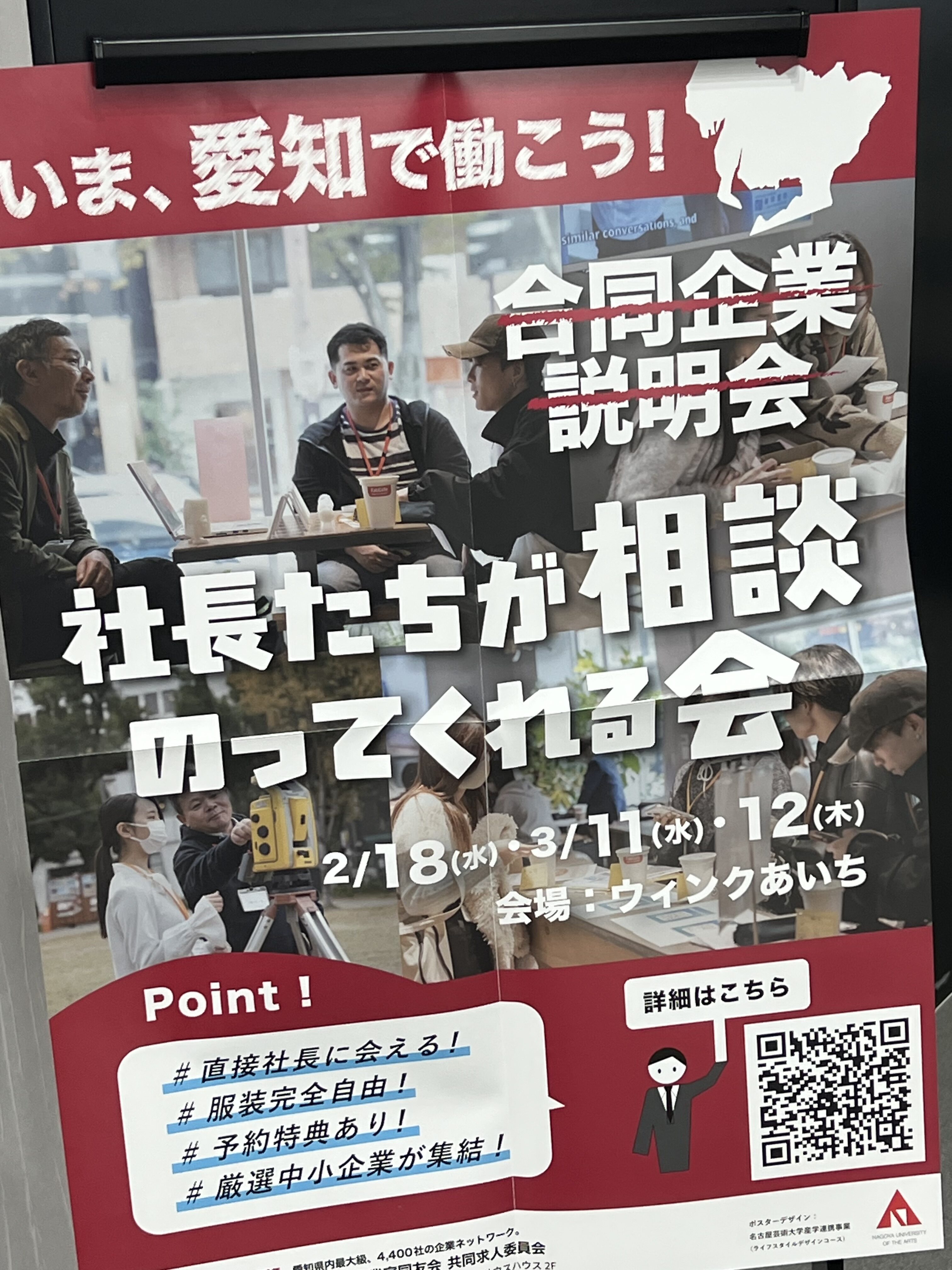 本日、ウインクあいちで開催された愛知中小企業家同友会主催の合同企業説明会に参加してきました。