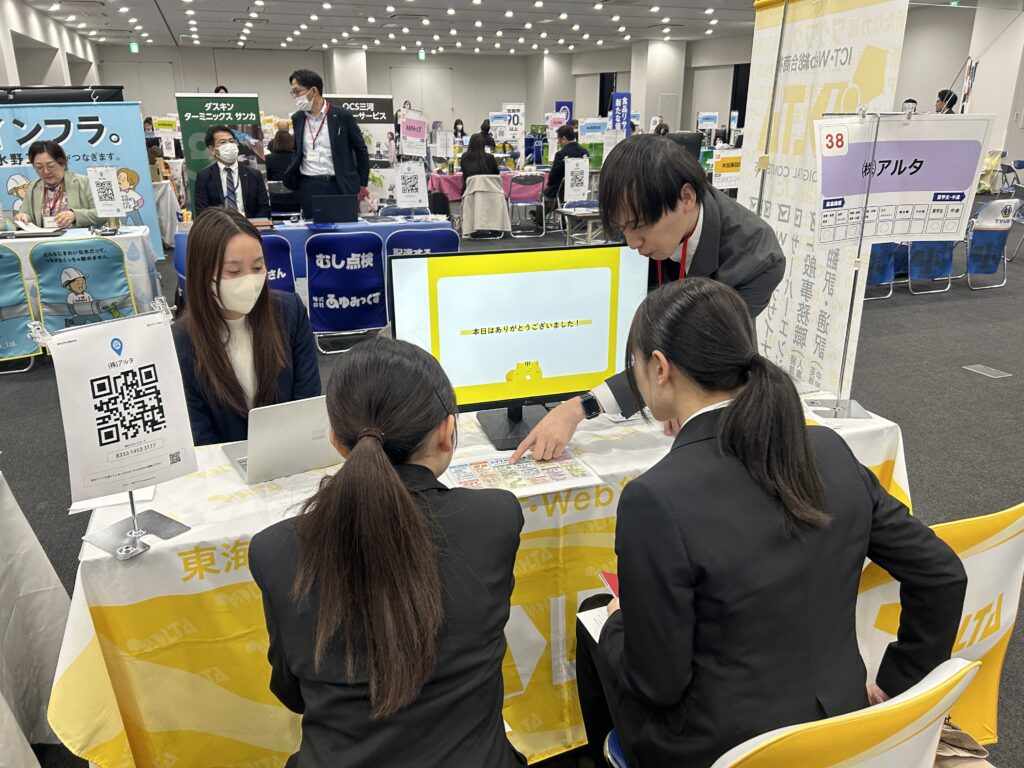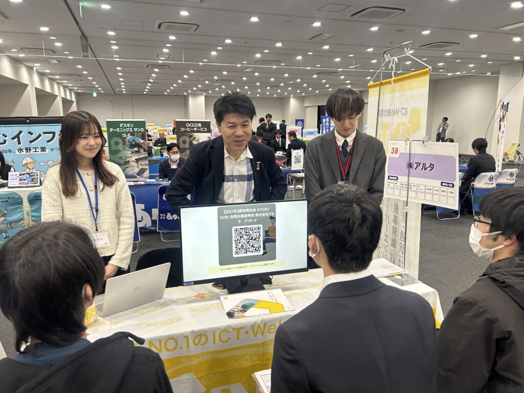 地元愛知の企業49社が集まる中、アルタのブースにも足を運んでくださった学生さんがいらっしゃいました。