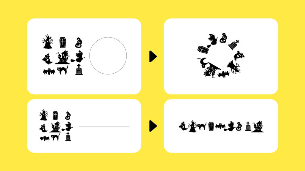 パス上オブジェクトツールは、選択した複数のオブジェクトを曲線・直線のパスに均等に整列させることができるツールです。