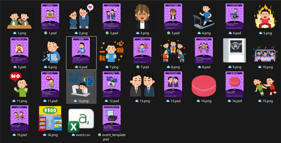 これでExcel(csv)の値毎に対応したpsdデータが書き出されます。