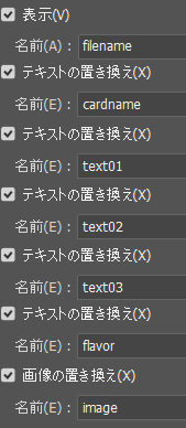 今回は私の趣味であるアナログカードゲームのご紹介…ではなく、制作過程で使っているPhotoshopの変数機能についてご紹介します。これを覚えると、名刺の様な下記条件を満たすデータを量産できるようになります。