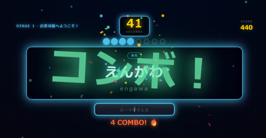 - 5コンボ → 難しい単語(`kubernetes`, `ファインチューニング` など)